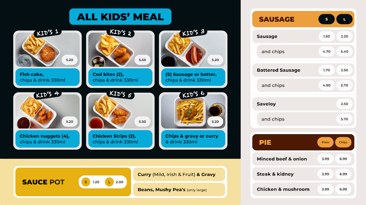 The true stars of the menu, however, are the crispy fish and chips, praised for their freshness and perfectly golden batter. Patrons rave about the generous portions and warm service, making every visit feel special. Popular side offerings include chips butty with various toppings, from cheese & beans to gravy, ensuring a comforting experience.